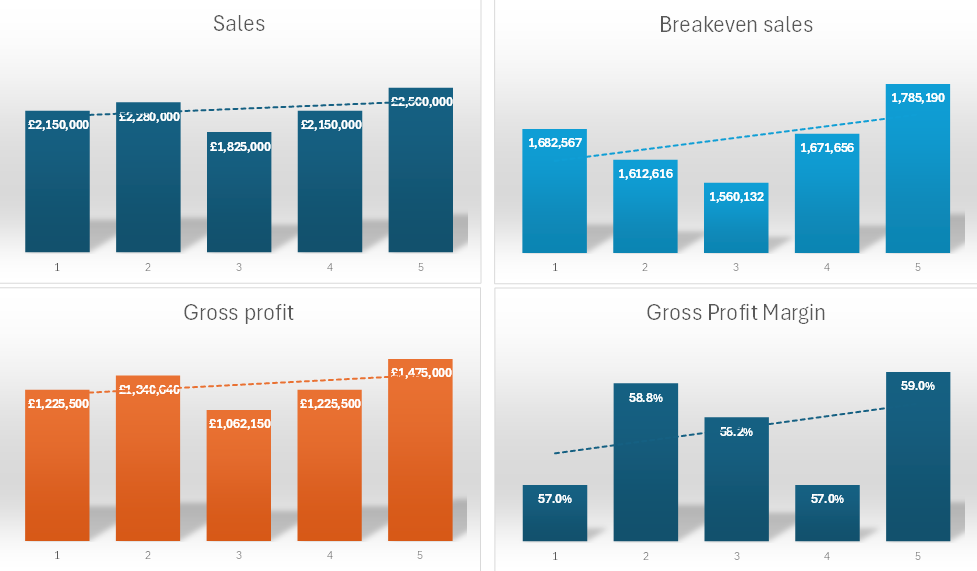 Profit and loss graphs and ratios to help you assess the business's trading history.